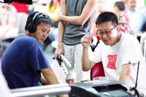 [During the past decade he’s almost entirely worked on Mainland blockbusters, from The Founding of an Army 建军大业, 2017, through airline thriller The Captain 中国机长, 2019, to Covid drama Chinese Doctors 中国医生, 2021. Even his latest film, the Hong Kong-set The Dumpling Queen 水饺皇后, 2025, was shot in a Mainland studio and centred on a Mainland-born character. Liu is one of the few Hong Kong-born film-makers to be fully accepted in the Mainland, and was the subject of a special exhibition at Dongguan Cultural Centre, in Guangdong province, that ran for 10 days in Aug 2017. He himself opened it on 18 Aug, see left.]